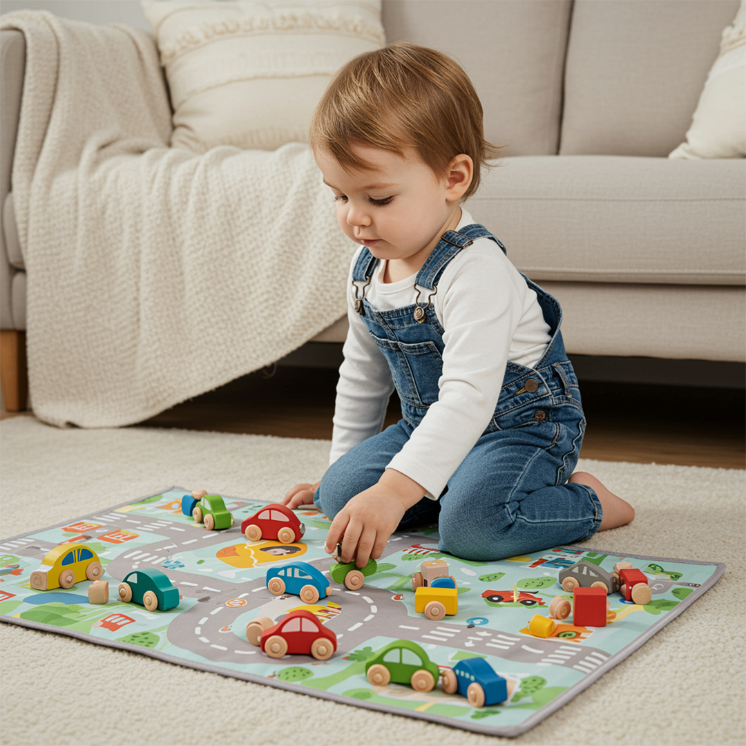 MiniRoute – Montessori Kjørematte i Lerret med Læring og Lek i Fokus