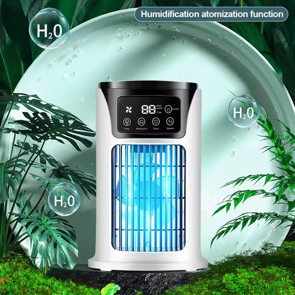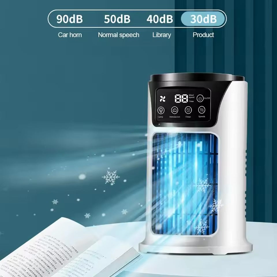 Den kombinerer kjøling, fukting og luftrensing i én praktisk enhet, perfekt for skrivebord, soverom eller kontor. Med fleksibel USB-drift er den alltid klar – hjemme eller på farten.