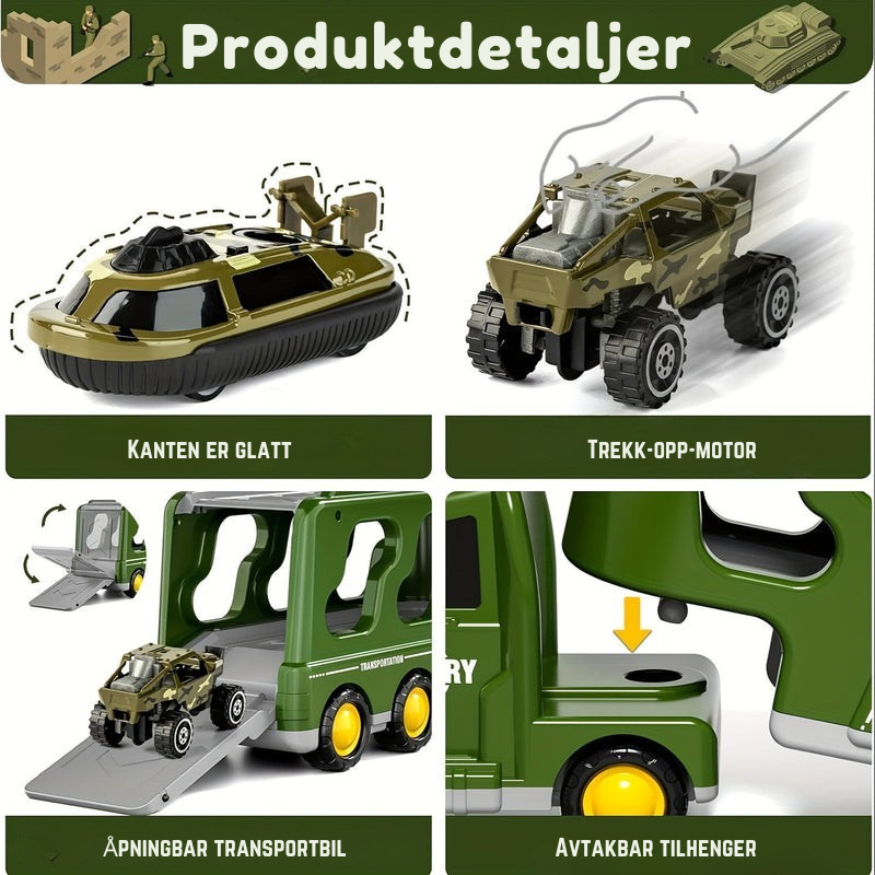 BattleHero 14-i-1 lekesett – Militærlastebil med stridsvogner og lydeffekter