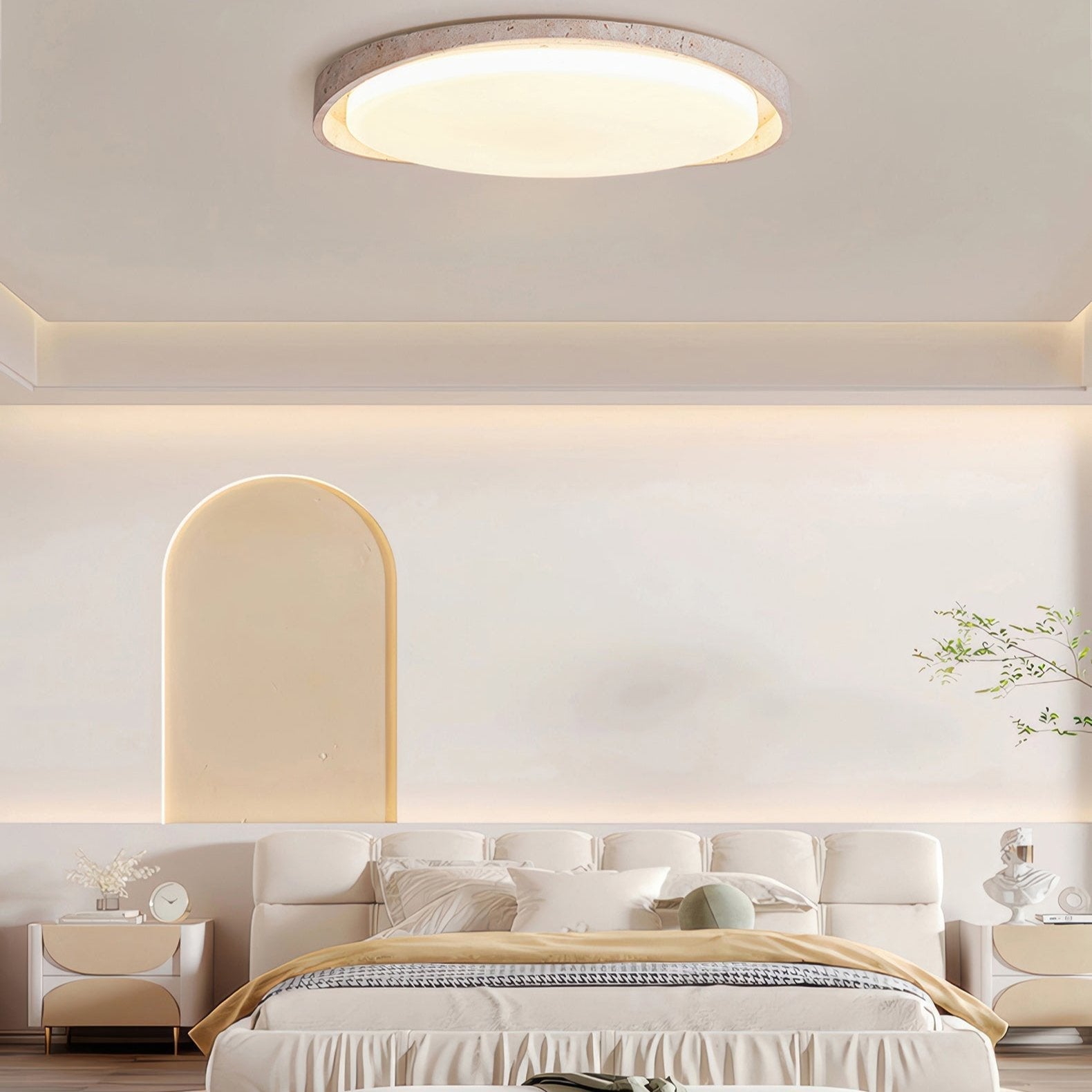 Lunaro – Taklampe kremfarget travertin LED – soverom og stue