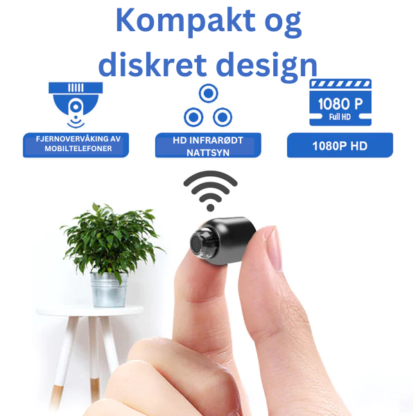 - Diskret design – Ultrakompakt kamera som enkelt skjules i ethvert rom\