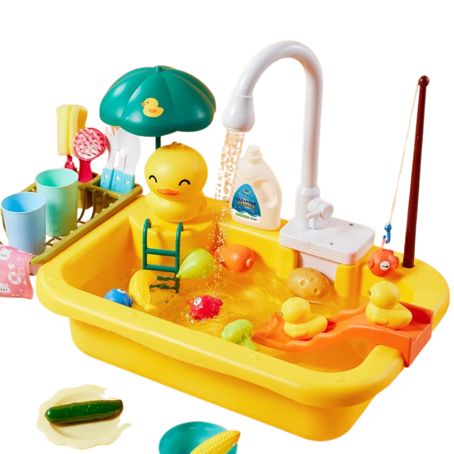 - Realistisk vannlek – Den elektriske kranen gir kontinuerlig vanngjennomstrømning, slik at barna virkelig kan vaske opp og skylle lekematen – akkurat som på et ekte kjøkken!